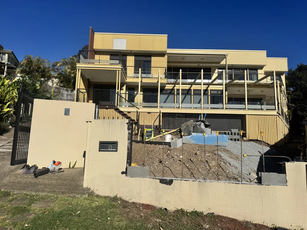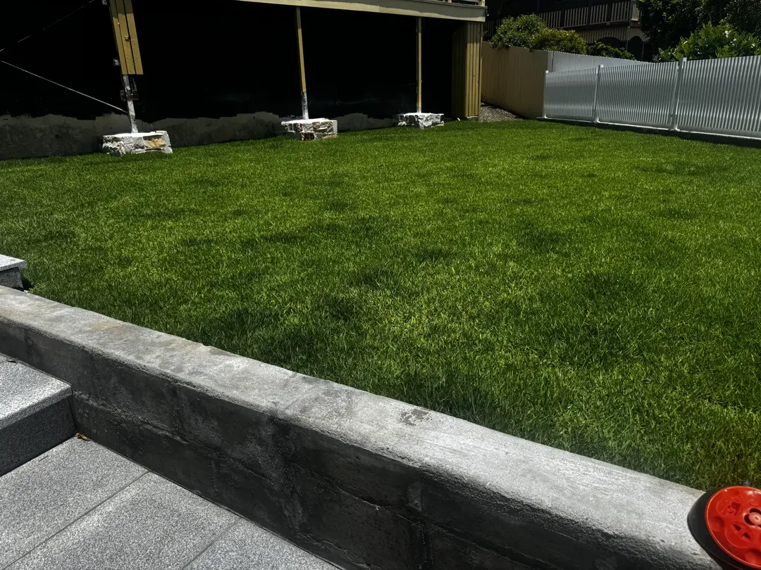 This was an amazing landscaping make over in Chapel Hill Brisbane. I totally re shaped the entry way by moving the walling keeping the old stairs and going straight up over the top of them and putting in new walling stairs and it ended up making a great play space for the family using empire Zoyzia as the turf.