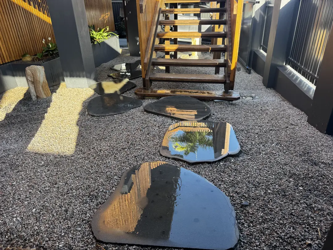 Before shot of the entry way at New Farm Brisbane Japanese style Zen Garden. You can still see the small pieces of bamboo popping through